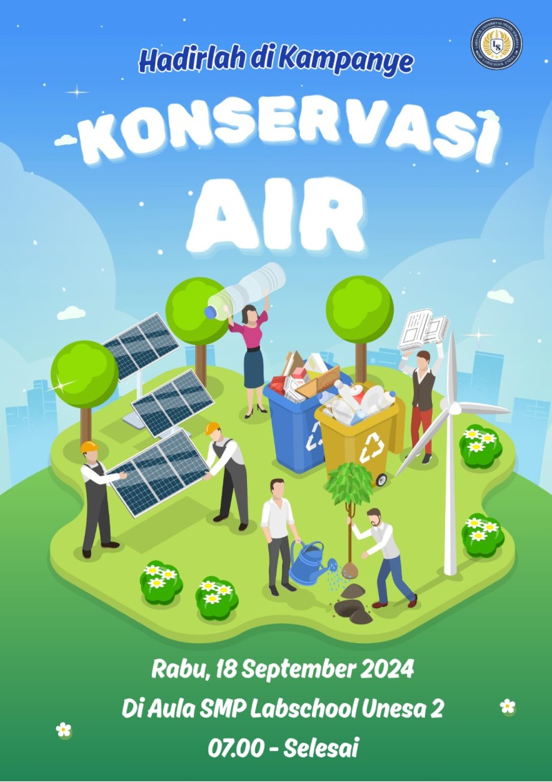 Yuk, seluruh warga SMP Labschool Unesa 2 jadi pahlawan lingkungan dengan ikut serta dalam kampanye Konservasi Air! Kecil bagi kita, besar dampaknya bagi bumi. Sampai jumpa di pagi hari ya! 🌿✨